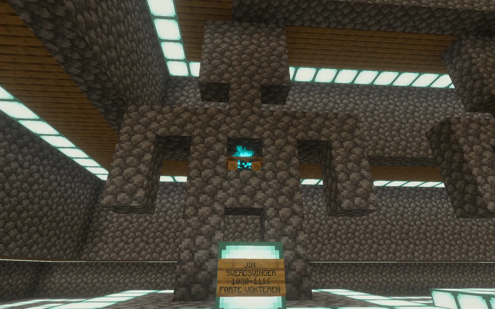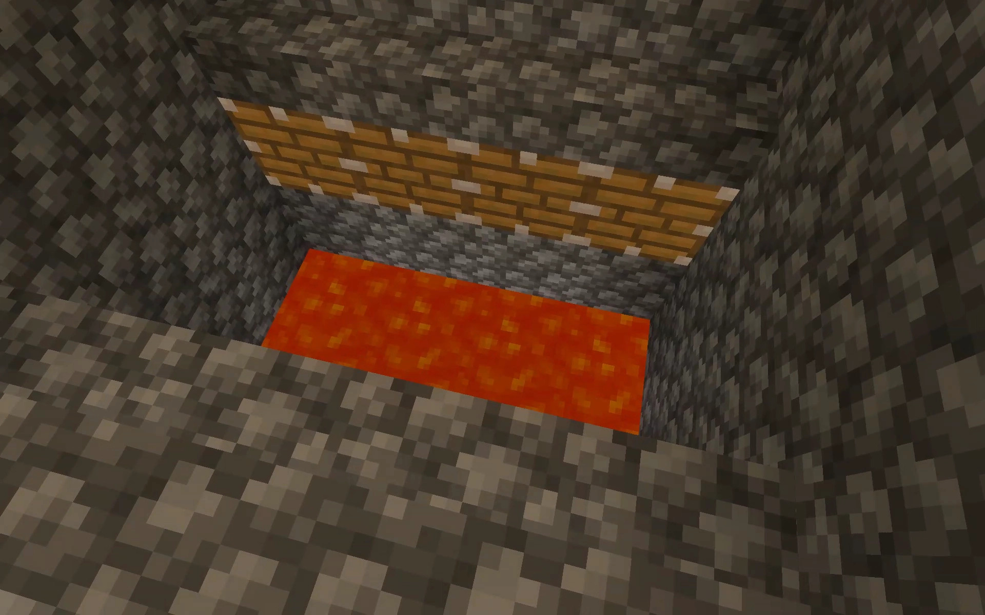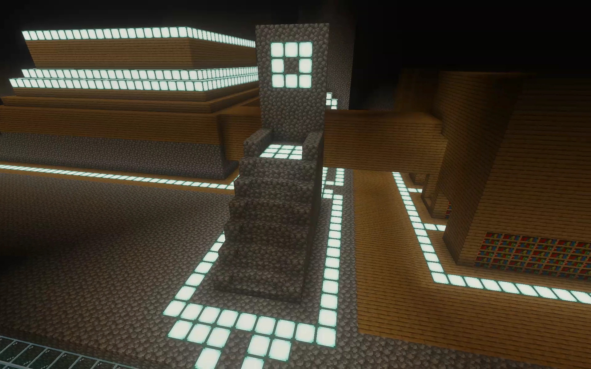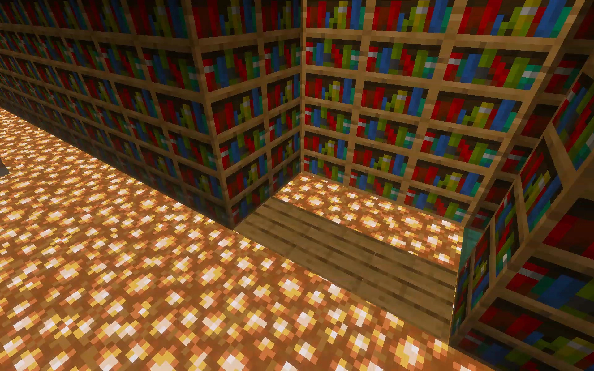 Jeg kaller det andre del siden under er det biblioteket ligger og der er det mange etasjer. Gulvet er dekket med magmablokk som gløder. Først fant jeg Madmablokk, så glass for å gjøre det fint og for å tette igjen før vannet ble lagt for å ikke det skulle lekke vann til biblioteket.