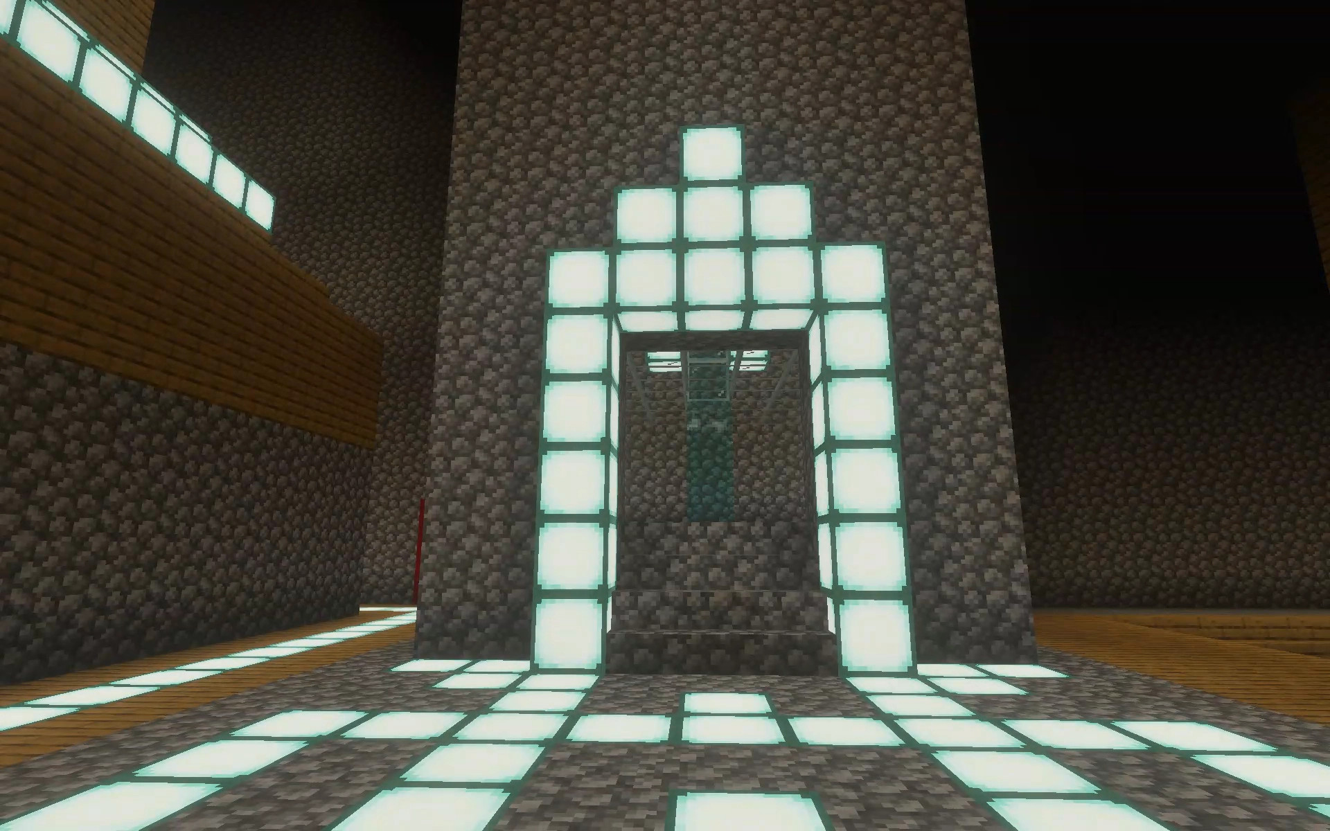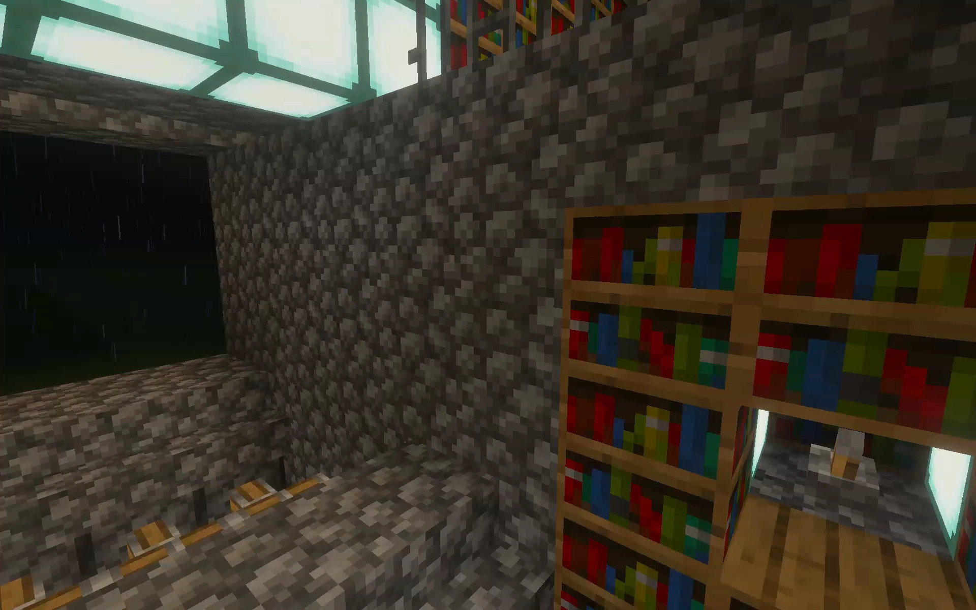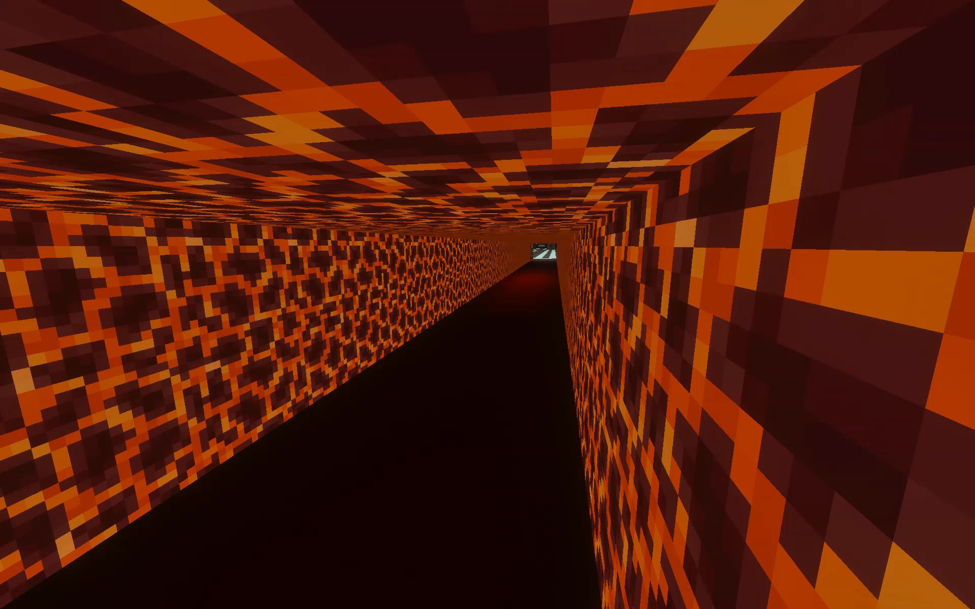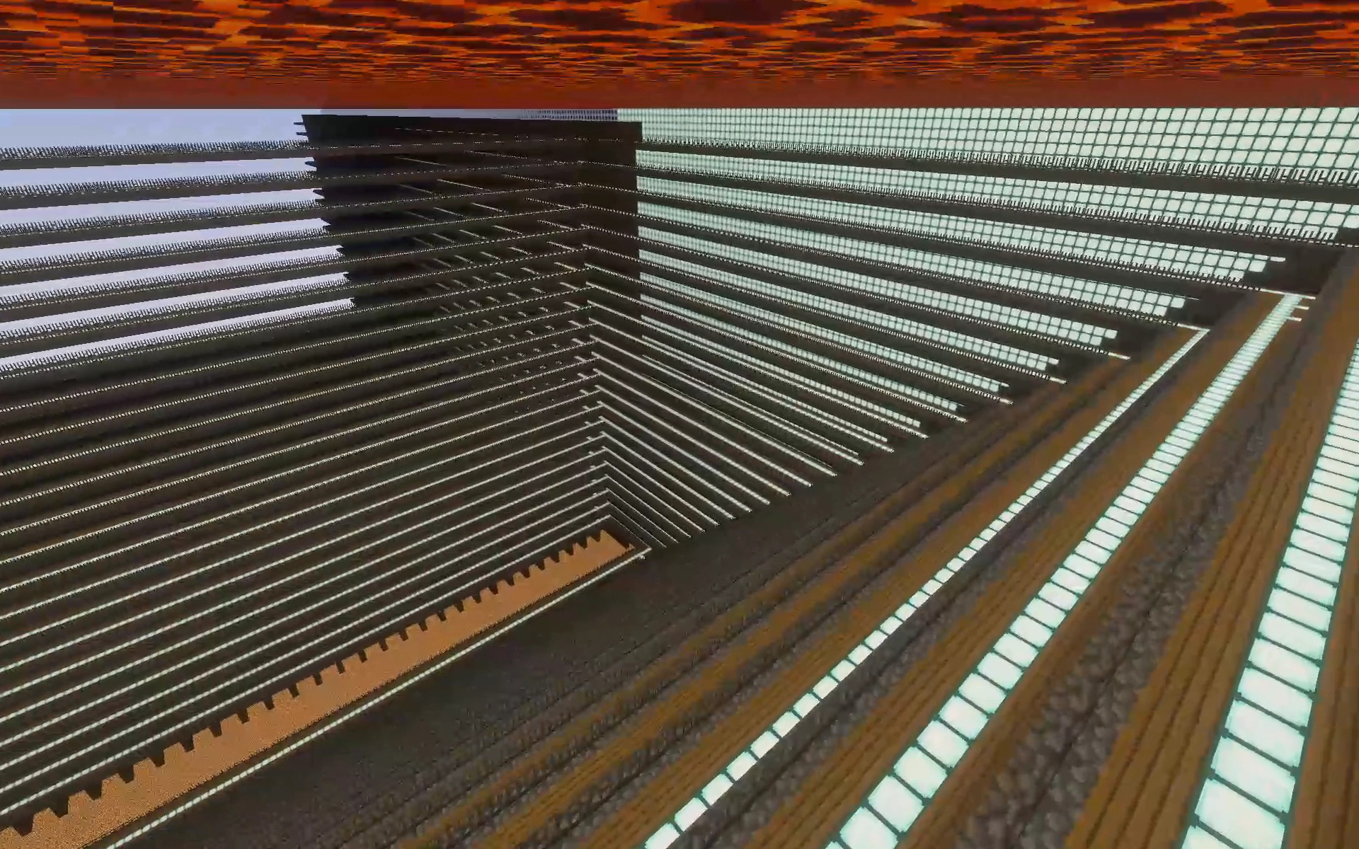 Jeg kaller det andre del siden under er det biblioteket ligger og der er det mange etasjer. Gulvet er dekket med magmablokk som gløder. Først fant jeg Madmablokk, så glass for å gjøre det fint og for å tette igjen før vannet ble lagt for å ikke det skulle lekke vann til biblioteket.