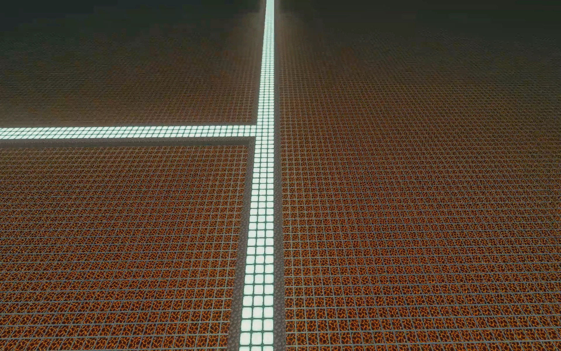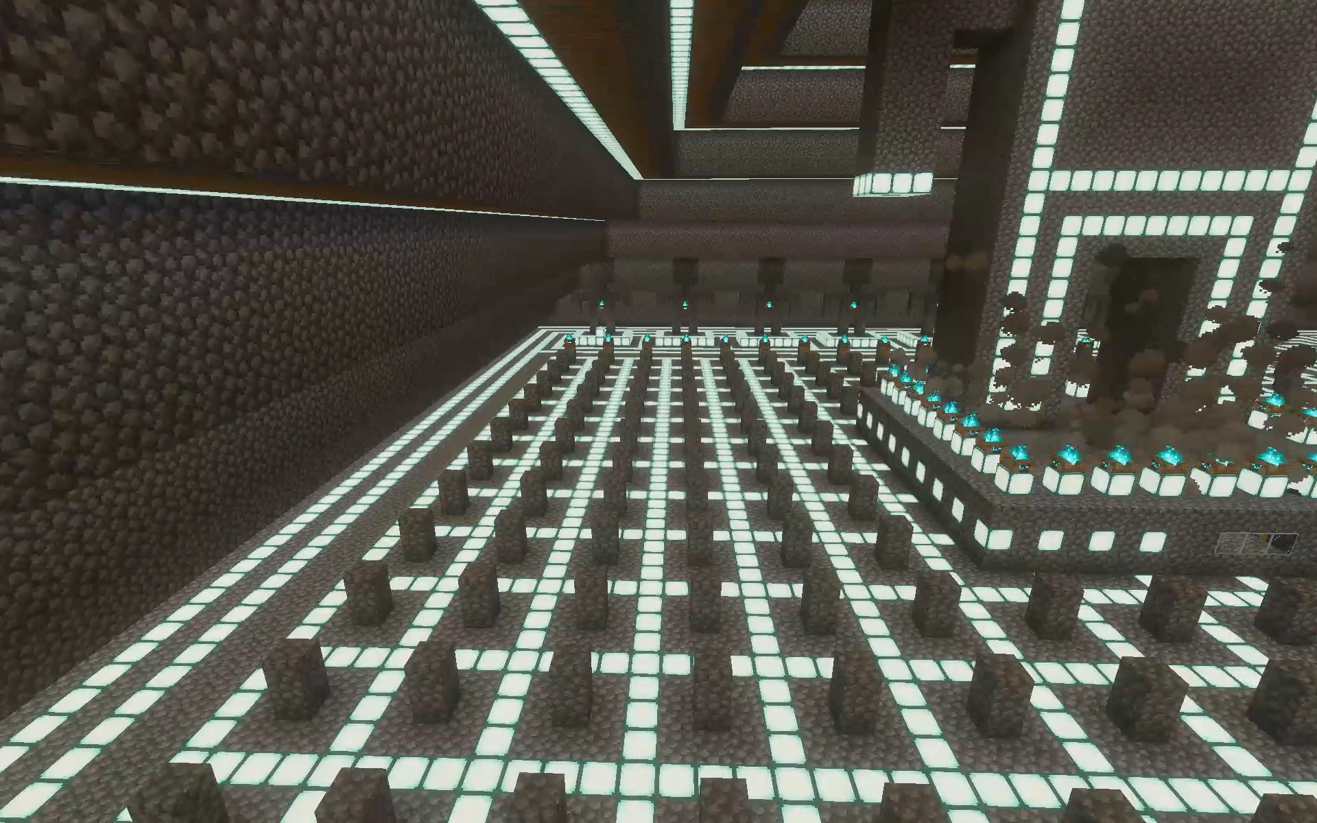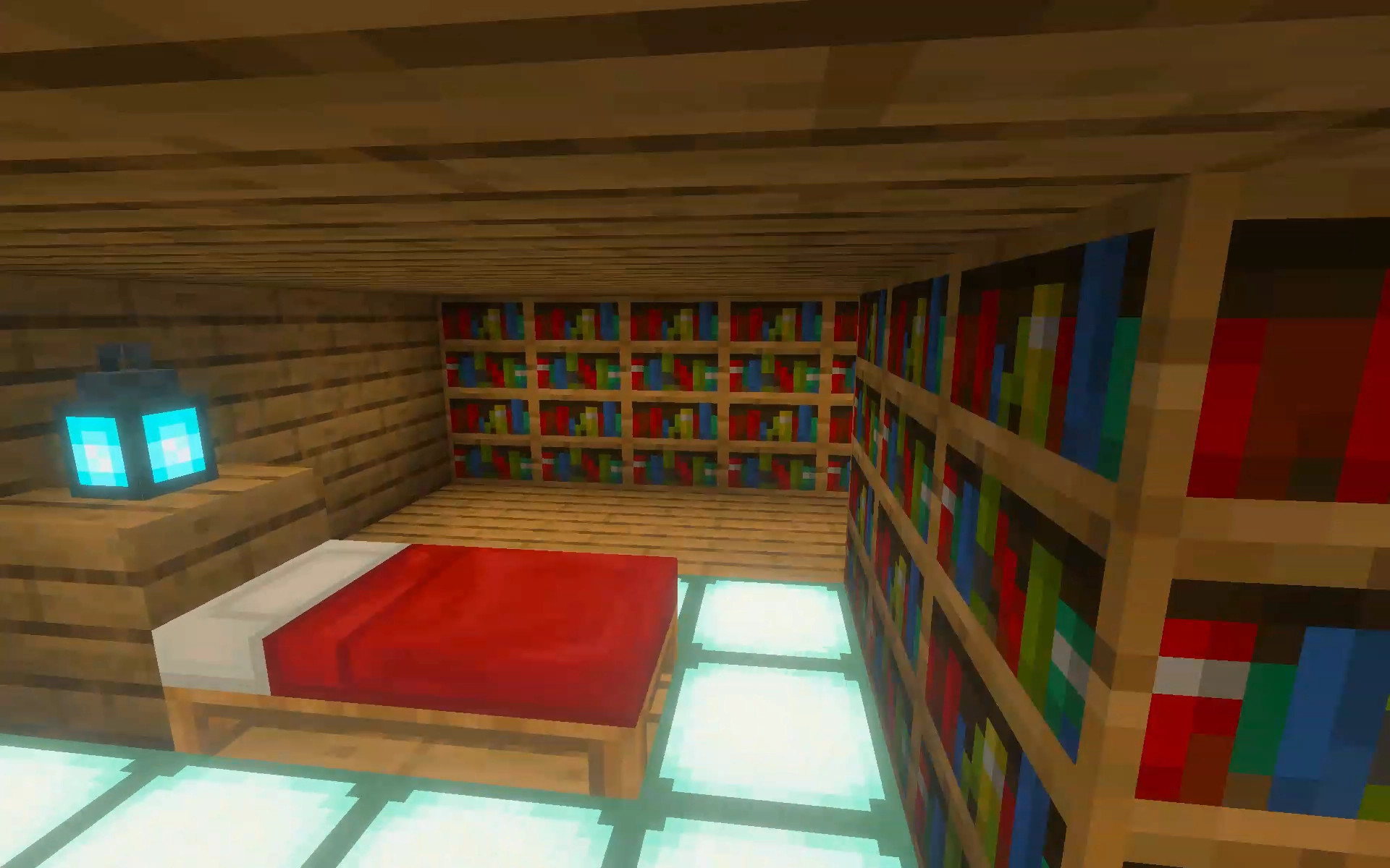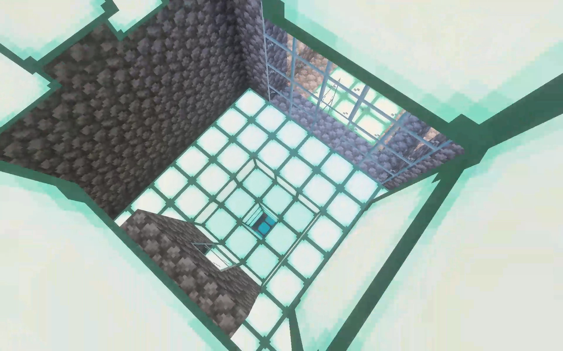 Jeg kaller det andre del siden under er det biblioteket ligger og der er det mange etasjer. Gulvet er dekket med magmablokk som gløder. Først fant jeg Madmablokk, så glass for å gjøre det fint og for å tette igjen før vannet ble lagt for å ikke det skulle lekke vann til biblioteket.